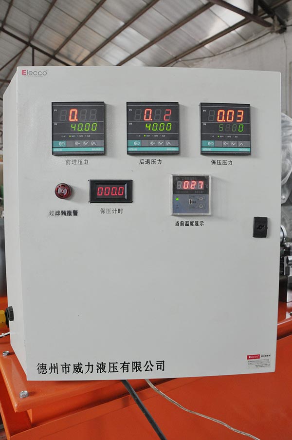 系統(tǒng)的電控部分,可顯示系統(tǒng)當前壓力,液壓油當前溫度以及保壓計時